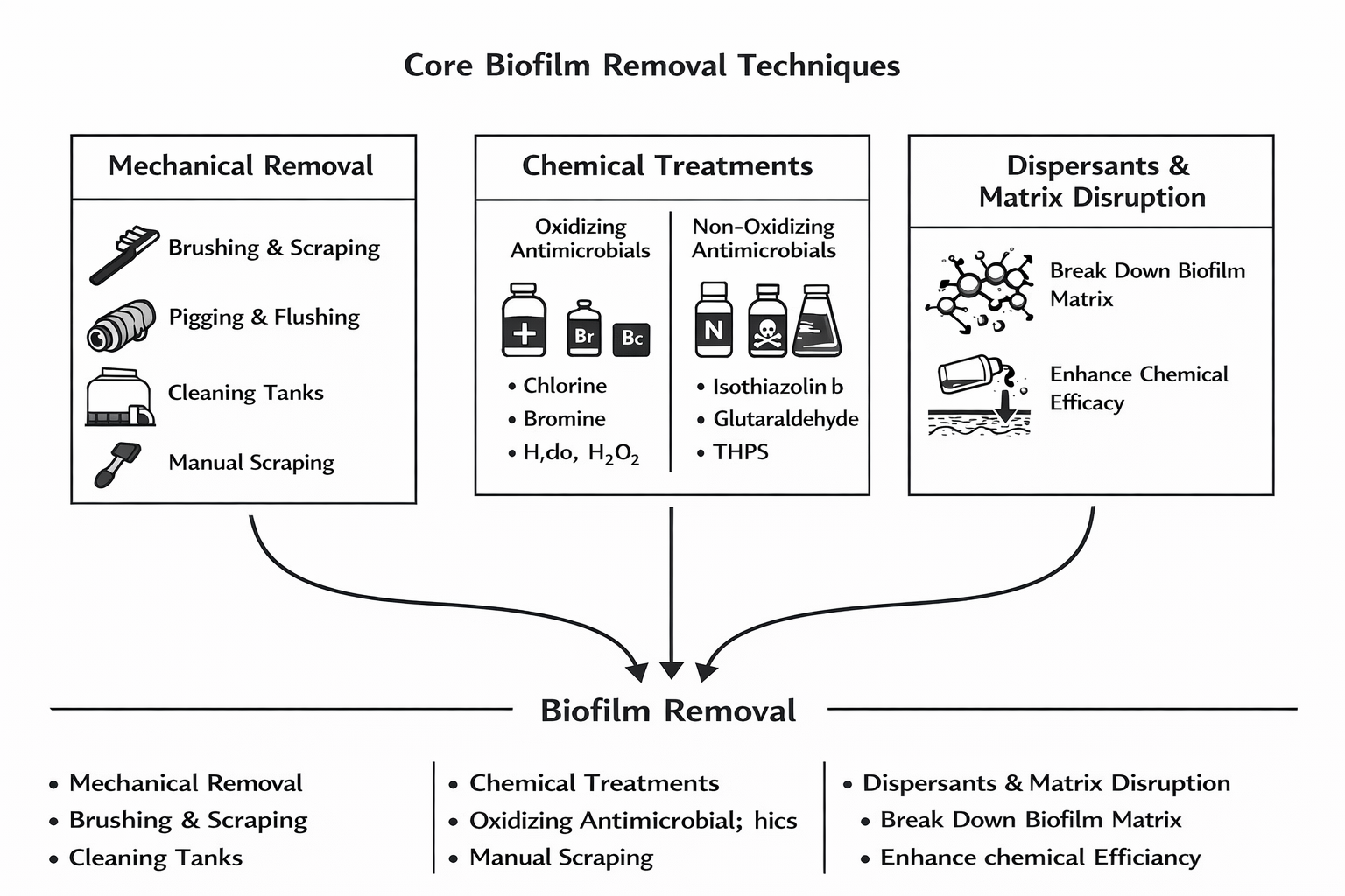 Because multiple factors influence biofilm control, a structured and well-documented approach is crucial. Effective removal depends on understanding the system, selecting appropriate treatment methods, and verifying performance rather than relying on a single chemical application.