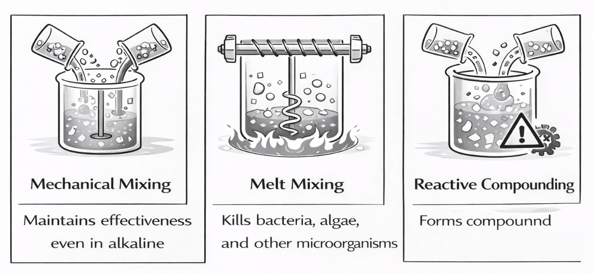 - Reactive compounding, where chemical reactions occur during blending to improve compatibility between otherwise immiscible materials