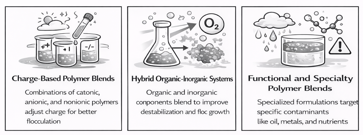 By combining several polymers into a unified system, water treatment professionals can create solutions that are both flexible and highly effective across a range of operating conditions.